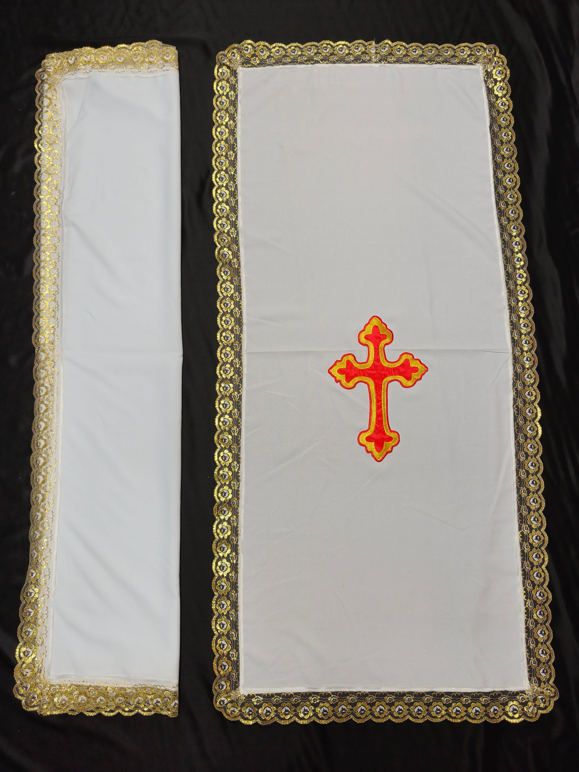 PULPIT & TABLE COVER SET (WHITE & RED CROSS)